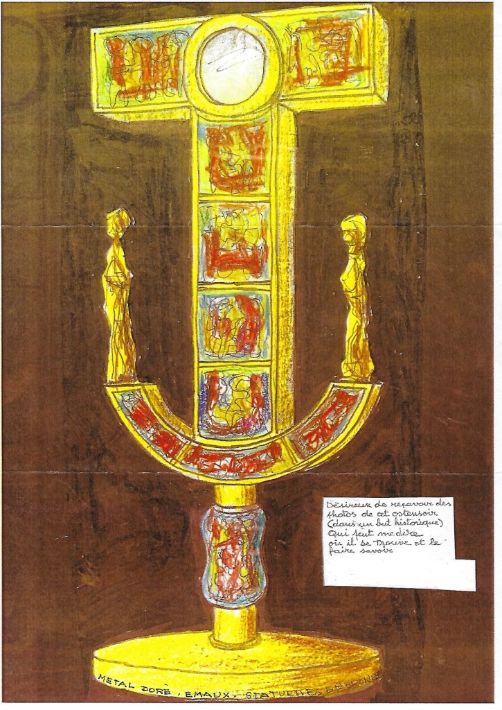 Un orfèvre formé à l’Ecole d’Art de Maredsous recherche l’ostensoir qu’il a réalisé pour obtenir sa maîtrise. Il souhaiterait en avoir des photographies pour ses archives ; il ne s’agit donc pas de vouloir le récupérer.