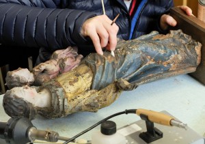 Parmi les très nombreux objets de culte et œuvres d’art en bois conservés au Musée diocésain, plusieurs sculptures vermoulues ont déjà été traitées anciennement, mais les méthodes utilisées se sont révélées insuffisantes, et l’infestation a subsisté. En 2018, la totalité de la collection de sculptures en bois a été examinée par des restauratrices professionnelles. Cela a permis d’évaluer la situation et de dresser un bilan général des opérations à entreprendre. Ce bilan était sans appel : de nombreuses œuvres sont touchées par les attaques d’insectes et doivent être traitées. Celles qui ne le sont pas doivent être traitées préventivement, car un début d’attaque n’est pas forcément visible. En tout, une centaine d’objets, de types et de tailles variés, sont concernés.